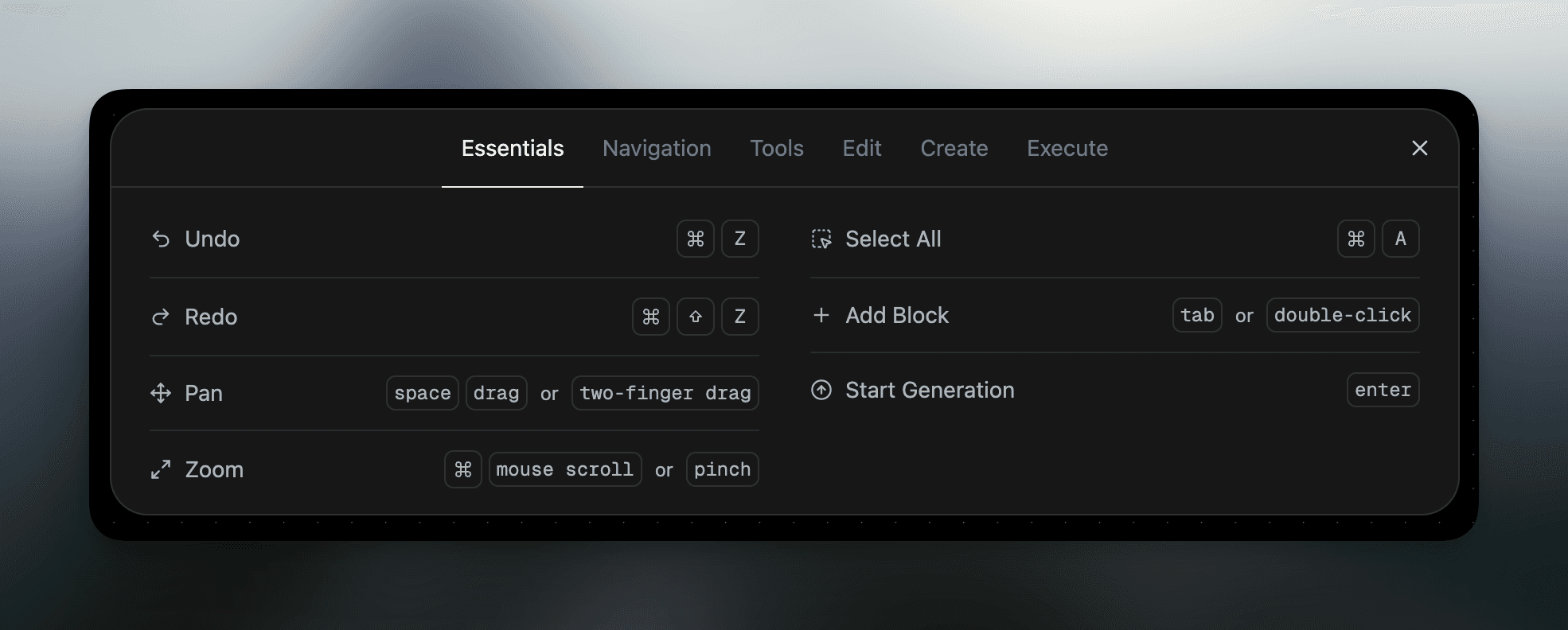 Power users rejoice: comprehensive keyboard shortcuts now cover nearly every basic canvas action, with a built-in reference guide to help you work faster.